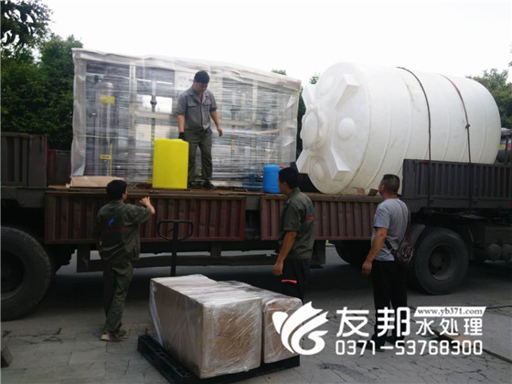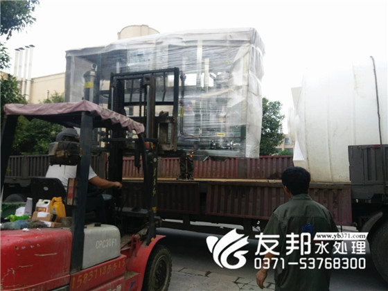 鄭州友邦出品的每一套設備就像工藝品,經過仔細的包裝,包裹,小心的裝車。避免在運輸過程中的磕磕碰碰。這是發往山西的6噸純凈水設備,全程需要500多公里的運輸。